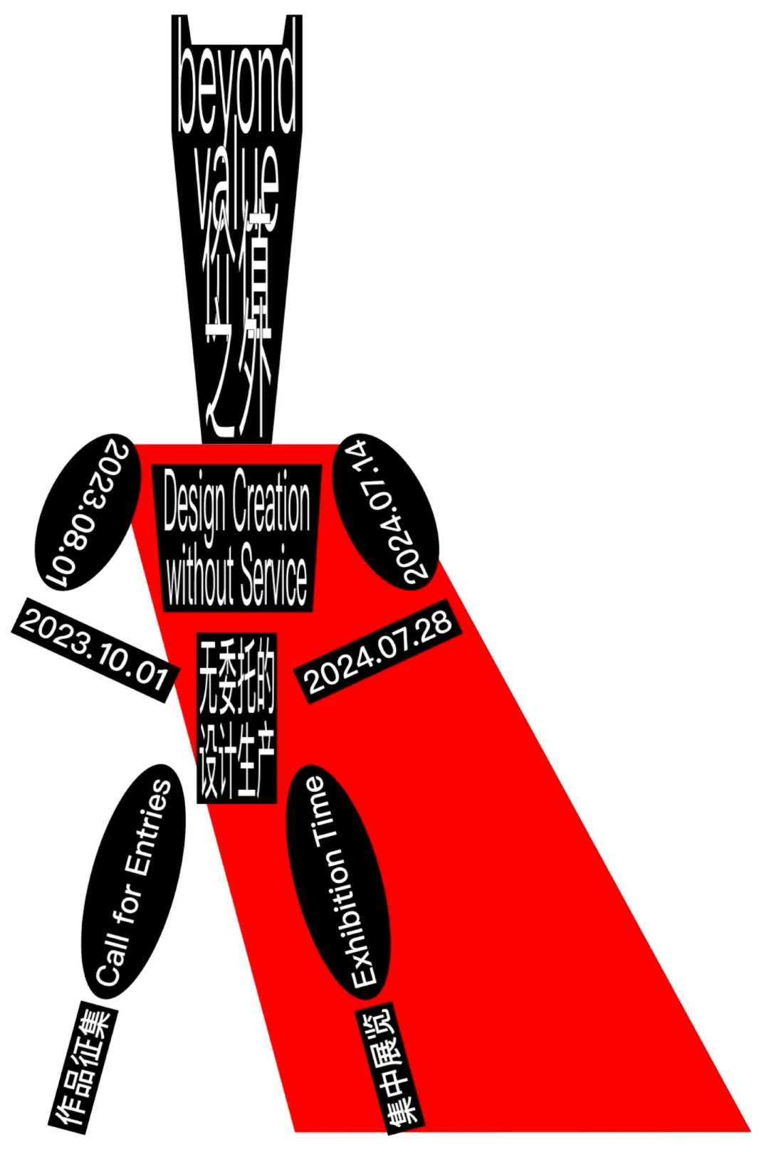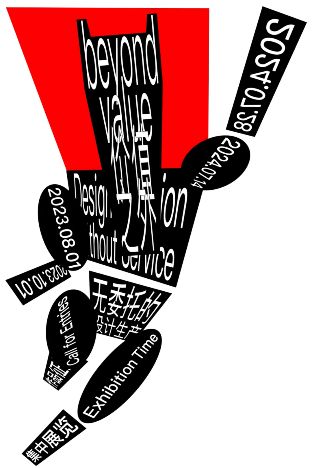 以中文文本为视觉中心,通过改变其稳定结构中的构件,形成编排中的多重节奏。