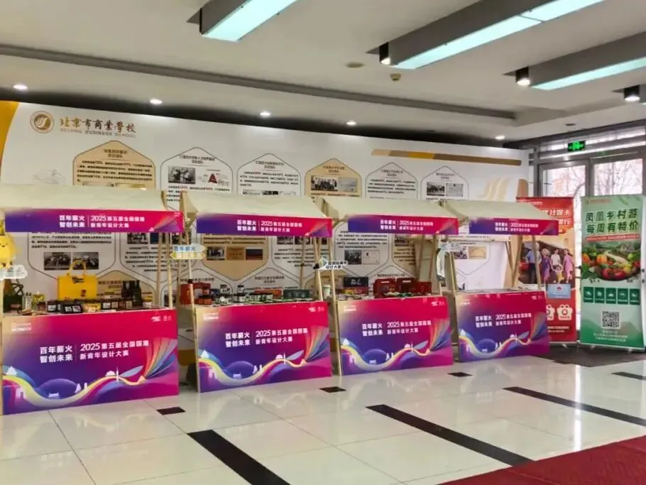 近日,北京市商业学校实训楼一楼展厅内,一场以“百年薪火·智创未来”为主题的创意设计展正式拉开帷幕。此次展览由学校商贸信息系与北京老字号协会联合举办,多家北京老字号企业参与其中,集中展示了围绕老字号文化创新所创作的优秀设计作品,呈现出传统品牌与青年创意的精彩碰撞。