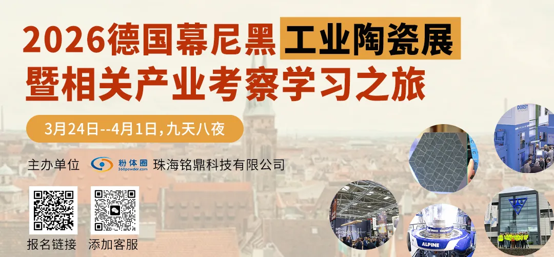 在3月24日至4月1日,粉体圈将组织“2026德国慕尼黑工业陶瓷展暨相关产业考察学习之旅”。在这次考察中,我们不仅可以直观了解高性能陶瓷的最新产品和技术,更有机会获得一个关键答案:在能源转型、数字化制造与可持续发展成为行业共识的今天,陶瓷还能为工业与技术发展提供哪些解决方案?