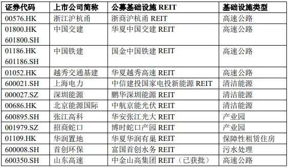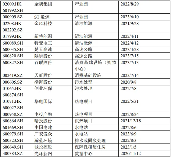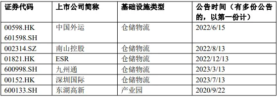 此外,从目前公告看,有如下上市公司预备发行基础设施公募REITs: