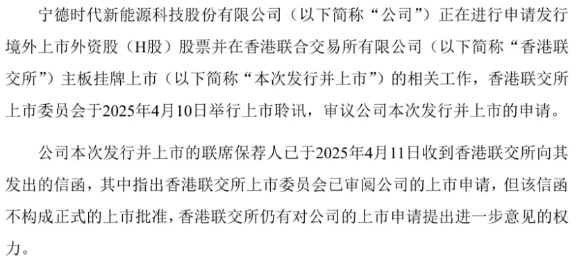 参考案例:宁德时代《关于香港联交所审议公司发行境外上市外资股(H股)的公告》
