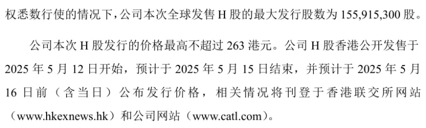 参考案例:宁德时代《关于刊发H股招股说明书、H股发行价格上限及H股香港公开发售等事宜的公告》