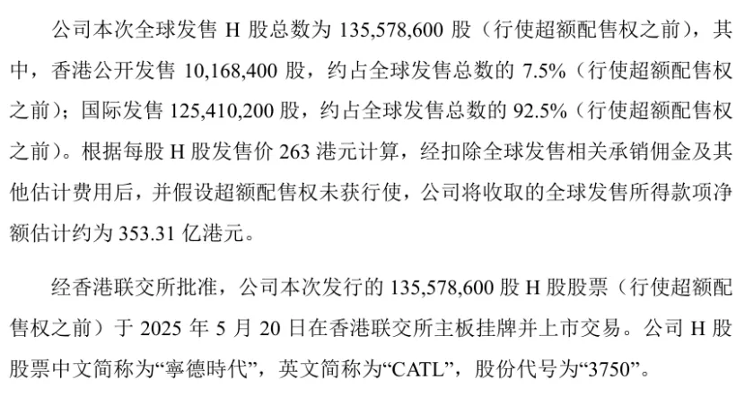 参考案例:宁德时代《关于境外上市外资股(H股)挂牌并上市交易的公告》