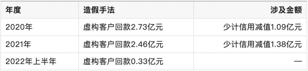 2020年6月,福能东方子公司大宇精雕通过确认虚假应收款、虚构采购业务等方式少确认应收款减值损失、虚增预付款,导致福能东方2020年虚增利润3579.85万元,占当年披露利润总额的120.18%。