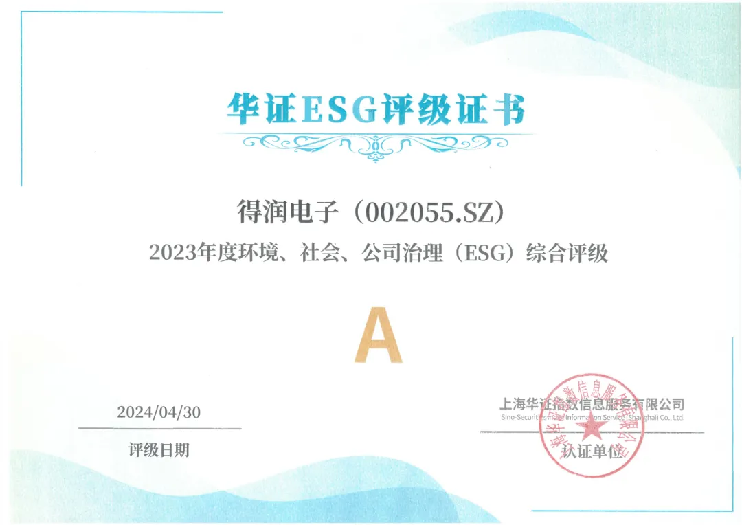 2024年得润电子还获得华证ESG评级A证书,据其披露,仅有10.8%能够达到这一评级水平。2025年,得润电子又获得“2025年度上市公司ESG价值传递奖”、“2025年最佳ESG创新力奖”。
