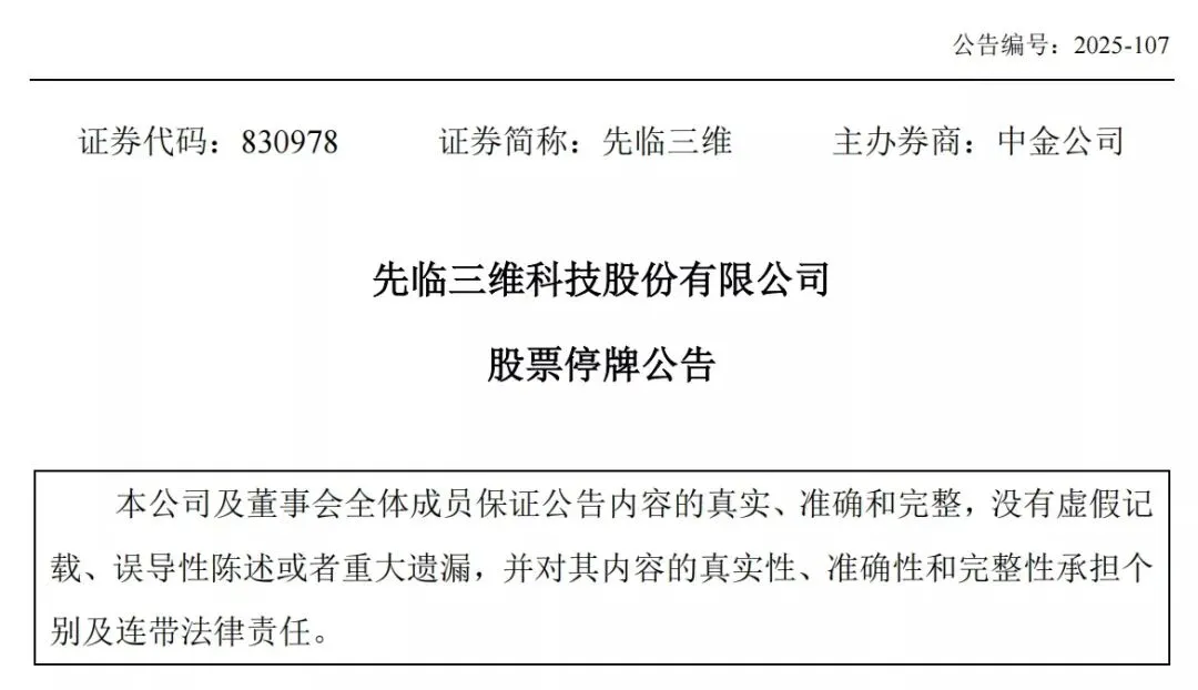 先临三维科技股份有限公司董事会于12月26日发布公告,公告称,2025年12月26日,公司收到浙江证监局于2025年12月25日印发的《关于对中国国际金融股份有限公司辅导工作的验收工作完成函》(浙证监综合监管字〔2025〕243 号),公司在中金公司的辅导下已通过浙江证监局的辅导验收。