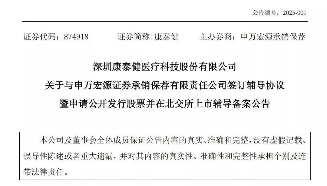 深圳康泰健医疗科技股份有限公司董事会于12月31日发布公告,公告称,深圳证监局于 2025 年 12 月 30 日受理了公司的上市辅导备案材料,公司开始进入辅导期。
