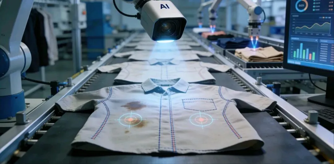 · AI视觉质检:在生产线环节,AI摄像头可以自动检测服装的缝线、污渍、对称性等质量问题。这种方式比人工更稳定高效,能优化质检流程的标准性和合规性。