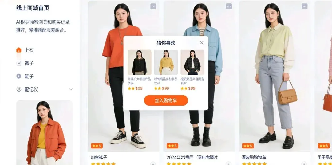 · 智能推荐与数字营销:AI可以分析顾客的浏览和购买记录,在线上或通过门店的智能设备提供精准搭配建议。在营销环节,AIGC技术能快速生成营销图片和视频,单张图片成本可降至1元,极大降低了创意内容的制作门槛和周期。