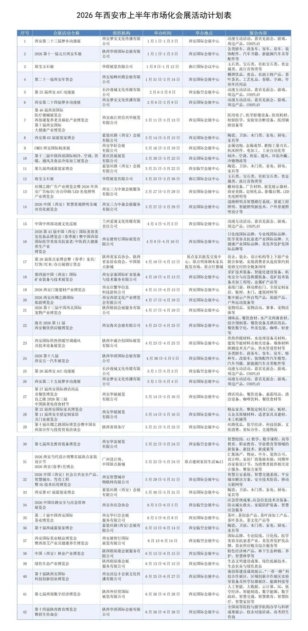根据《西安市会展业促进条例》规定,现发布2026年西安市上半年市场化会展活动计划。