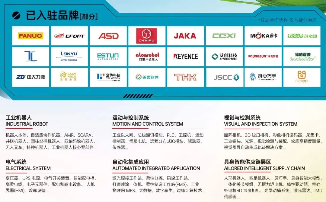 六 具身智能供应链展区:人形机器人、四足机器人、灵巧手、具身智能大模型、一体化关节模组、无框力矩电机、线性驱动器、空心杯电机3D深度相机、光学动捕系统、激光雷达、IMU传感器...