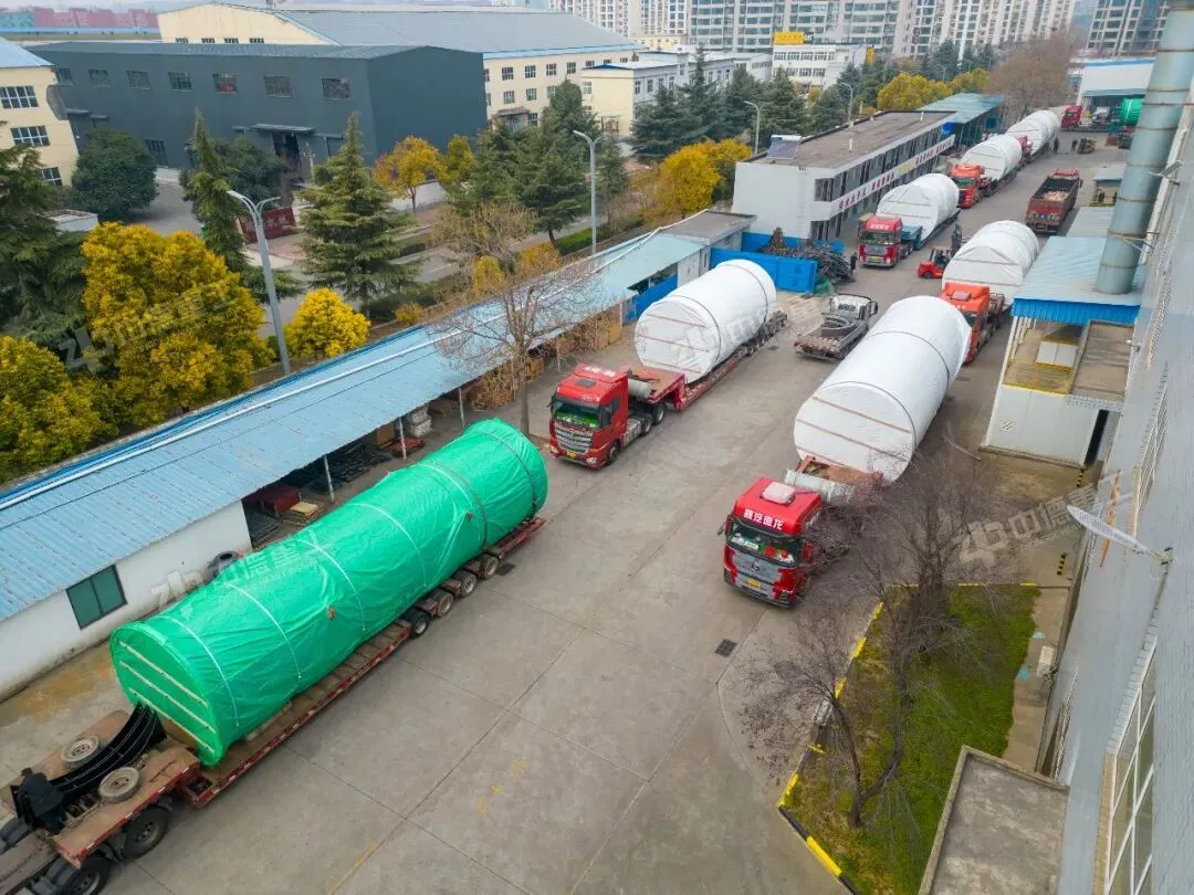 近日,洛阳中德重工有限公司隆重发货一批大型设备,一台直径4.8米、长66米的回转窑,两台直径4.2米、长13米的球磨机。正式启程奔赴海外,服务于大型高端建材生产线项目。