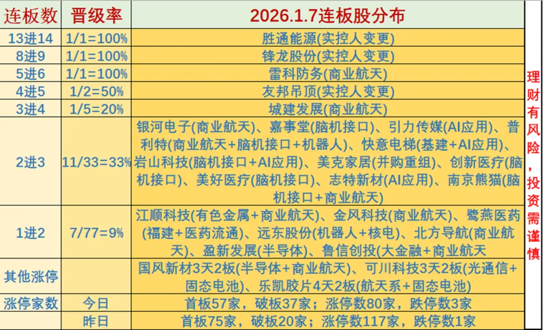 连板晋级率降至37%,昨晚国晟科技、嘉美包装宣布停牌核查,高位股方面表现分化,胜通能源一字涨停晋级14连板,但此前4连板的南兴股份以及3连板的农心科技均遭遇断板,2进3个股晋级率也降至仅有三成。此前赚钱效应爆棚的高弹性方向今日遭遇批量瓦解,多只脑机接口概念20厘米人气股断板,此前2连板的北证脑机概念股倍益康以及智能驾驶概念股汉鑫科技盘中均遭遇深幅调整。在高位股尚未批量积出现负反馈前,市场仍有望维持热点间良性轮动。