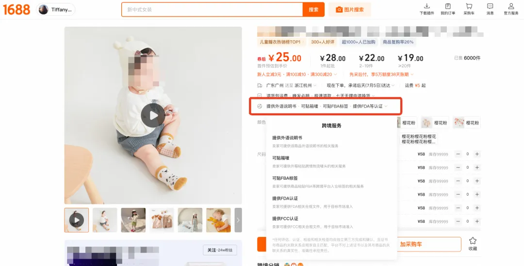 一勾:勾选跨境增值服务(可提供外语说明书、外语包装、支持贴标等,勾选即表明服务能力,平台不收取任何费用)