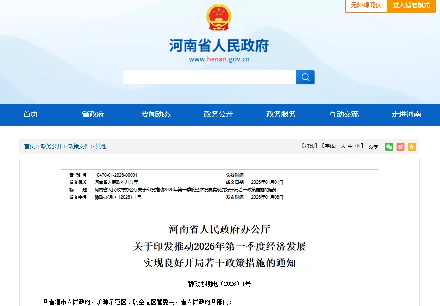 为深入贯彻党的二十届四中全会精神和习近平总书记在河南考察时重要讲话精神,全面落实中央经济工作会议部署和省委经济工作会议要求,聚焦“1+2+4+N”目标任务体系,全力打好打赢冬春季攻保战役,推动2026年第一季度经济发展实现良好开局,为完成全年目标任务打下坚实基础,制定如下政策措施。