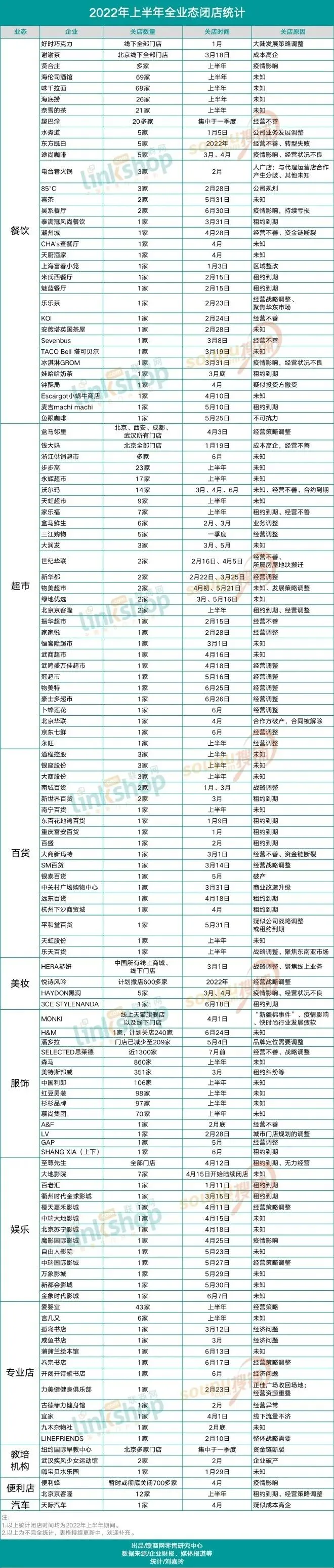 2022年上半年,关店潮愈演愈烈。据联商网零售研究中心不完全统计,上半年至少有近4700家线下门店关闭,其中不乏沃尔玛、悦诗风吟、海底捞等综合实力强劲的头部品牌。