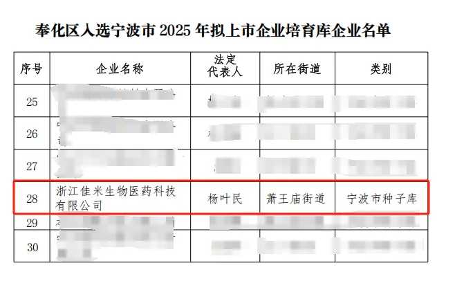 喜报|佳米生物入选宁波市2025年拟上市企业培育库名单