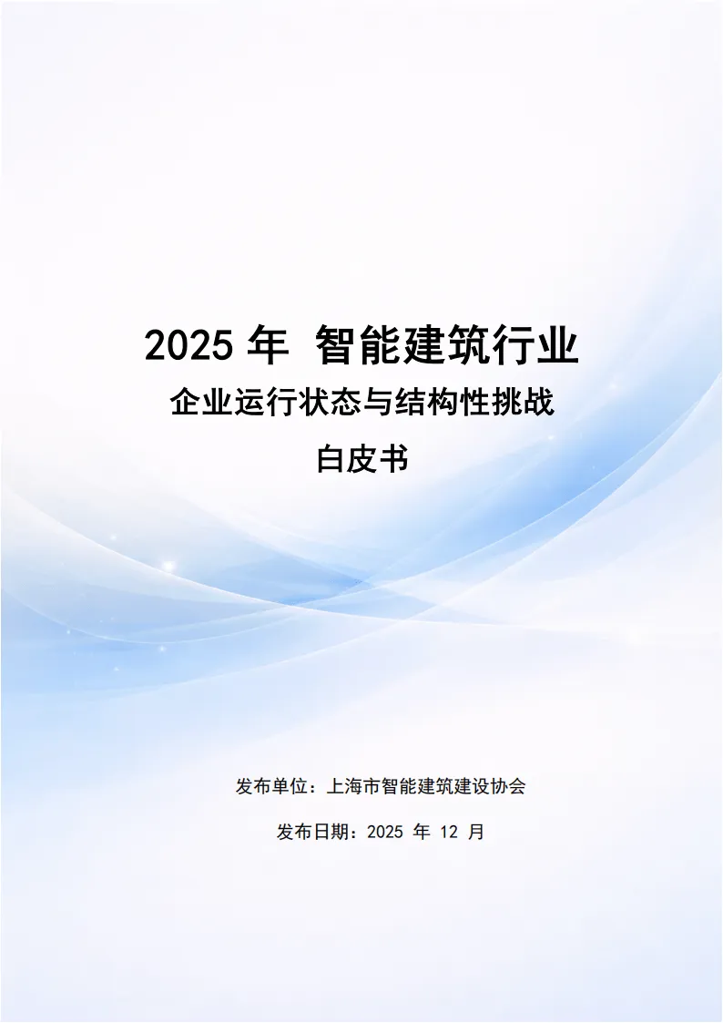《2025年智能建筑行业企业运行状态与结构性挑战白皮书》由上海市智能建筑建设协会于2025年12月发布,聚焦行业从外延扩展向结构调整过渡的关键阶段,系统梳理了不同规模企业的运行状态与结构性挑战,为行业提供了共识基础。
