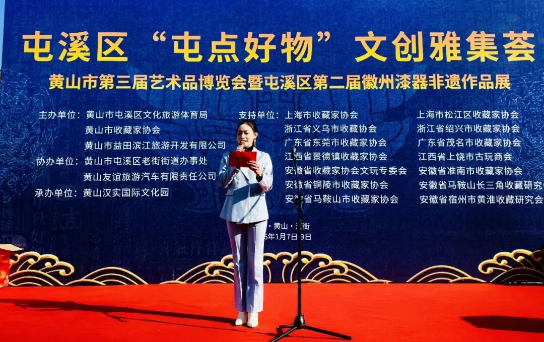 寒来暑往,秋收冬藏。1月7日上午,第三届黄山市艺术品博览会暨屯溪区第二届徽州漆器非遗作品展在屯溪河街隆重开幕。展会由黄山市屯溪区文化旅游体育局、黄山市收藏家协会、黄山市益田滨江旅游开发有限公司联合主办,黄山市屯溪区老街街道办事处、黄山友谊旅游汽车有限责任公司协办,黄山汉实国际文化园承办。