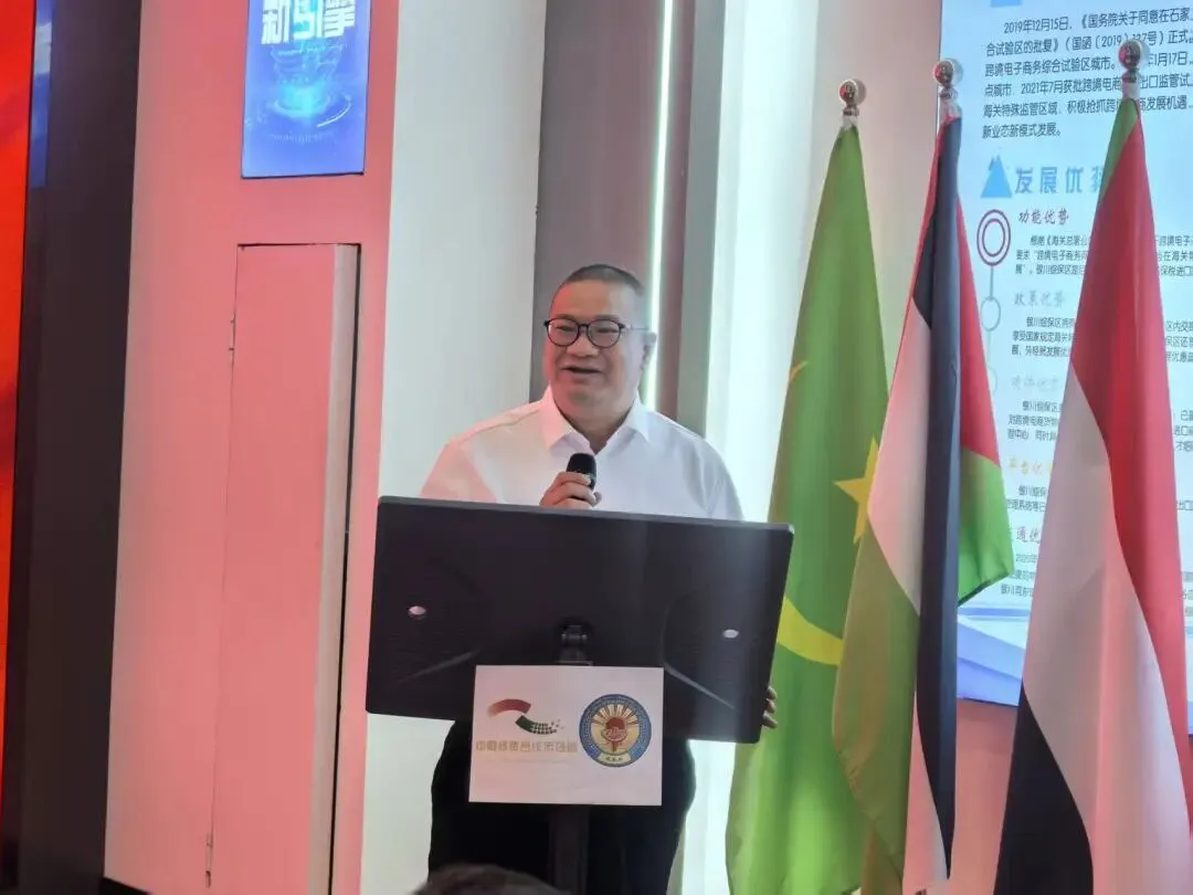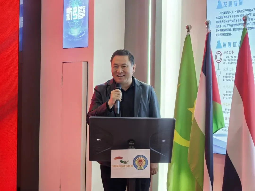 银川综合保税区管委会副主任吕文亮首先发表讲话,他指出,中阿经贸合作与中国-东盟经贸合作均是高质量共建“一带一路”的重要组成部分。银川综合保税区将全力做好服务保障工作,为双方合作提供政策支持、通关便利等全方位保障,合力推动形成“中阿-东盟”跨区域经贸协作新格局。