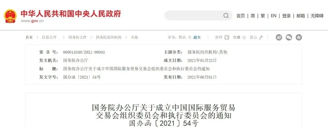 国务院办公厅关于成立中国国际服务贸易交易会组织委员会和执行委员会的通知