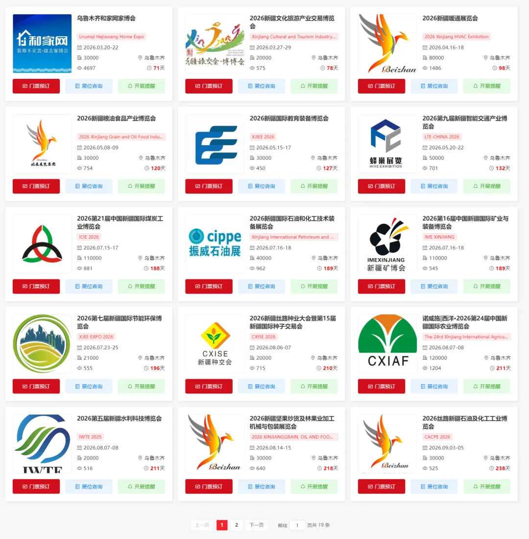 2026年乌鲁木齐将举办多场重要的展会活动,涵盖了家具、旅游、暖通、粮油、教育、交通、煤炭、石油、矿业、农业、水利、农业、食品设备、石油、电力、百货、能源展等多个领域。小编为大家整理了2026乌鲁木齐展会排期表,希望能帮助你规划行程。末文获取乌鲁木齐展会门票预约入口~(大多展会门票限时免费)