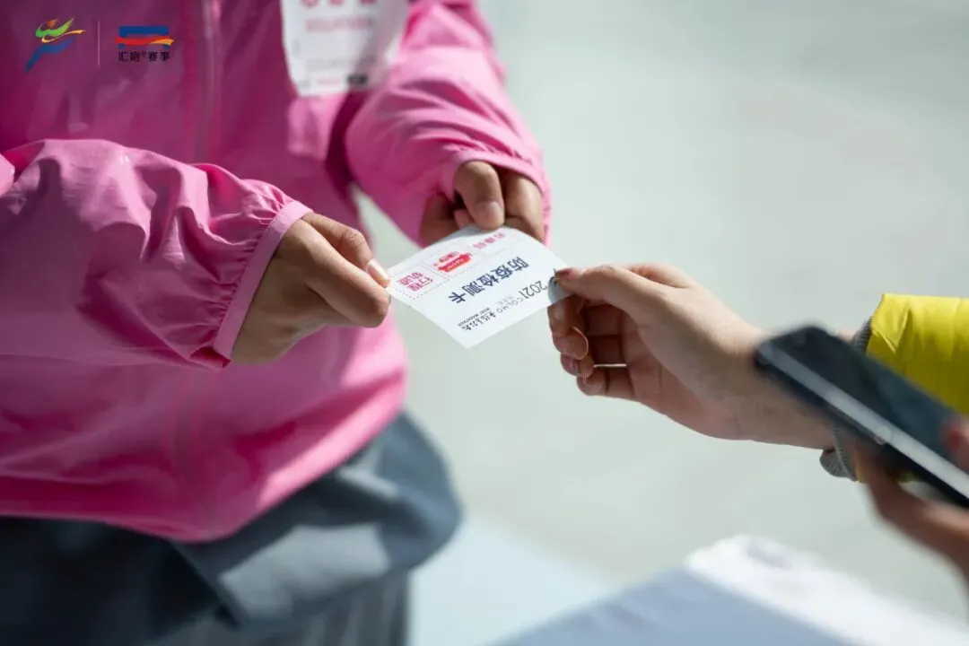 随着领物小票上印章盖满,戴上象征选手身份的参赛手环,将独一无二的号码布装进存衣包,你的参赛物品尽入囊中。
