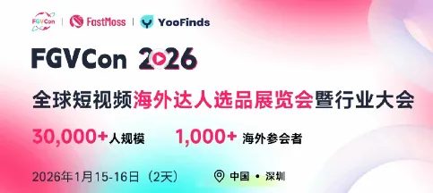 2026年1月15日至16日,第四届FGVCon全球短视频达人选品展览会暨行业大会将于深圳福田会展中心6、7、8号馆举办。本届大会由FastMoss与YooFinds联合主办,是全球短视频与直播电商领域最具影响力的垂直行业盛会,展览面积超20,000平方米,预计吸引超30,000名行业参与者。大会深度链接TikTok、亚马逊、YouTube等全球主流电商平台,汇聚顶尖达人、品牌方、跨境卖家、供应链源头及生态服务商,构建从内容创作、商品选品到跨境履约的全链路资源对接平台。
