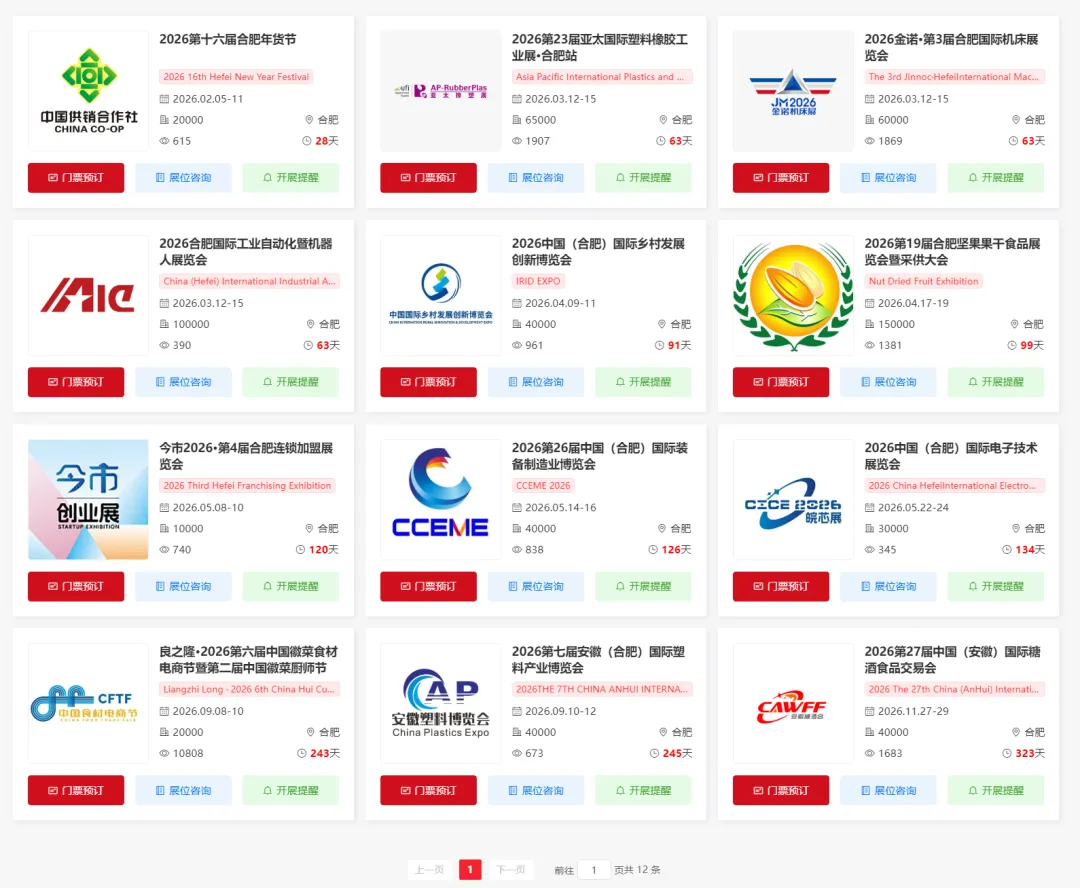 合肥展会2026时间表(全年)