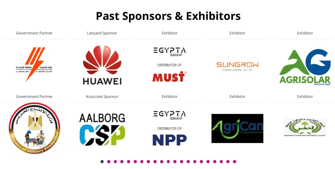 埃及开罗太阳能光伏、储能展览会;上届仓储埃及展会总面积10000+平方米,来自中国、南非、肯尼亚、迪拜、土耳其、印度、德国、墨西哥、伊朗等250家展商,参展人数达到10000+人。