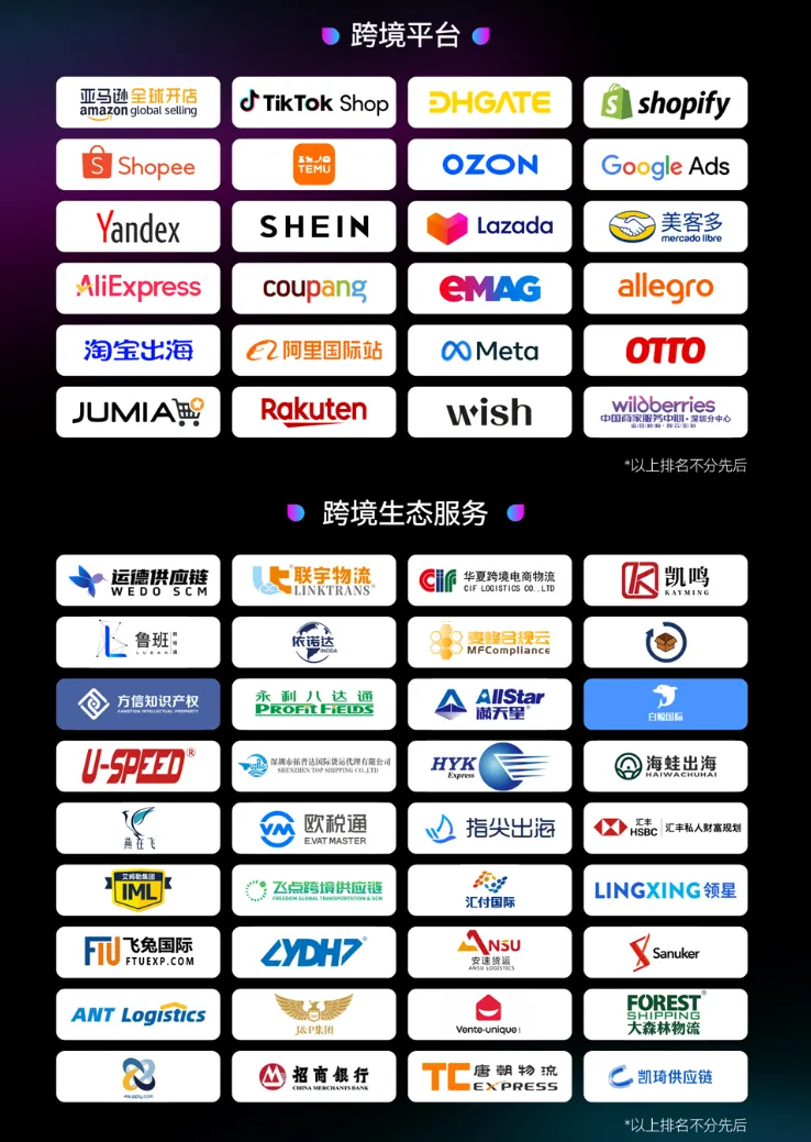 汇聚跨境全产业链,支付、物流、Al和大数据应用、VAT法律和合规等头部服务商齐聚,一展链接全球跨境全资源。
