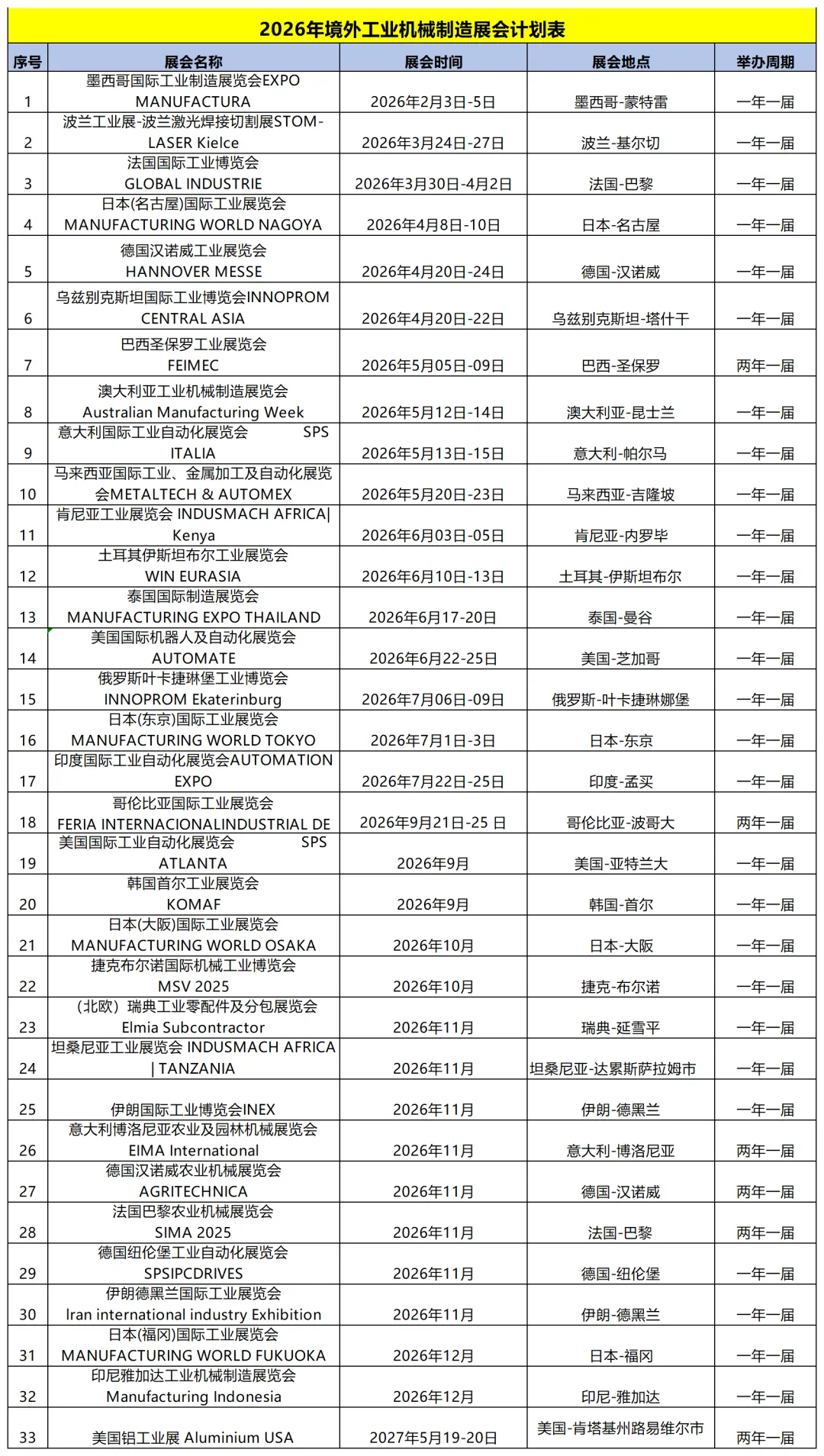 2026年展会一览表