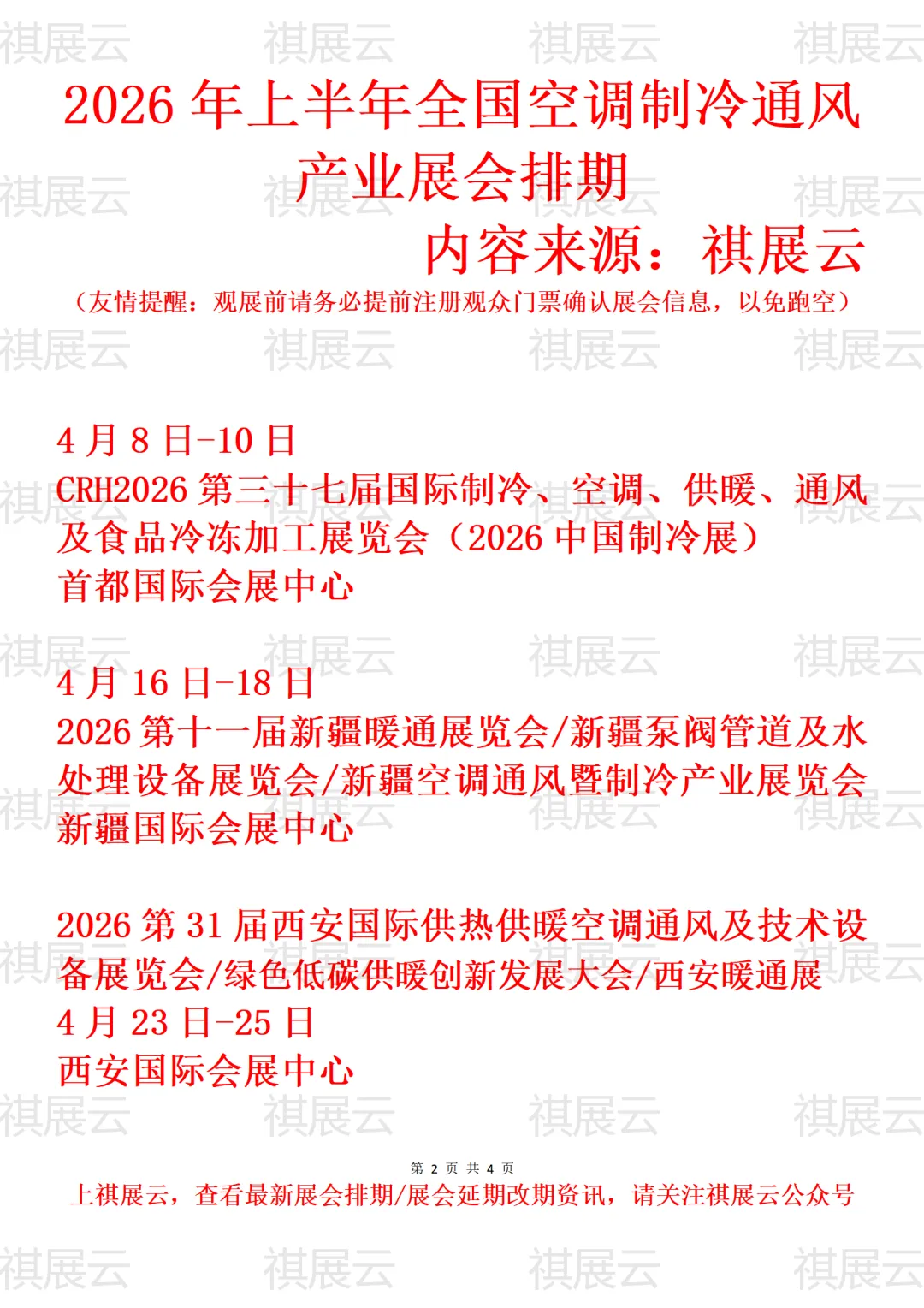 会展资讯丨2026年上半年全国制冷/通风/制冷展产业展会排期