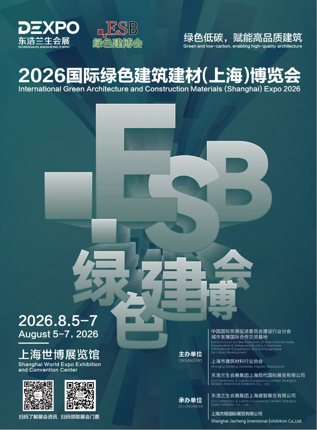 2026国际绿色建筑建材(上海)博览会International Green Architecture and Construction Materials(Shanghai)Expo 20262026年8月5-7日上海世博展览馆(国展路1099号)参展咨询:李娜 13918530615主办单位:中国国际贸易促进委员会建设行业分会城市发展国际合作交流基地上海市建筑材料行业协会东浩兰生集团上海现代国际展览有限公司承办单位:东浩兰生集团上海建智展览有限公司上海今协商贸有限公司招商单位:上海杰程国际展览有限公司上海弗迪展览有限公司20000m² 展出面积 Exhibiting Area(m²)300+ 参展品牌 Brands20000+ 专业观众 Visitors Brands10+ 精彩活动 Events