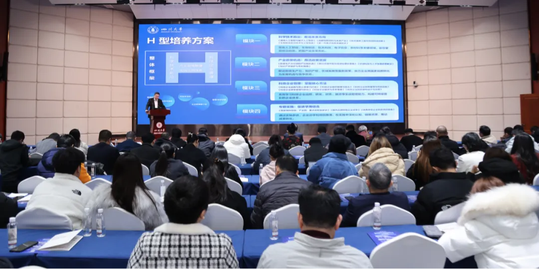 活动期间,四川大学商学院EDP培训中心常务副主任晁祥瑞详细介绍了科技商学院打造的科技企业家“SC-TECH”能力模型与“H”型培养方案。四川省科技人才研究院院长丁建解读了四川省科技人才支持政策。此外,现场还举办了四川大学师生校友科技成果转化项目路演,多个具有产业化潜力的创新项目进行展示。