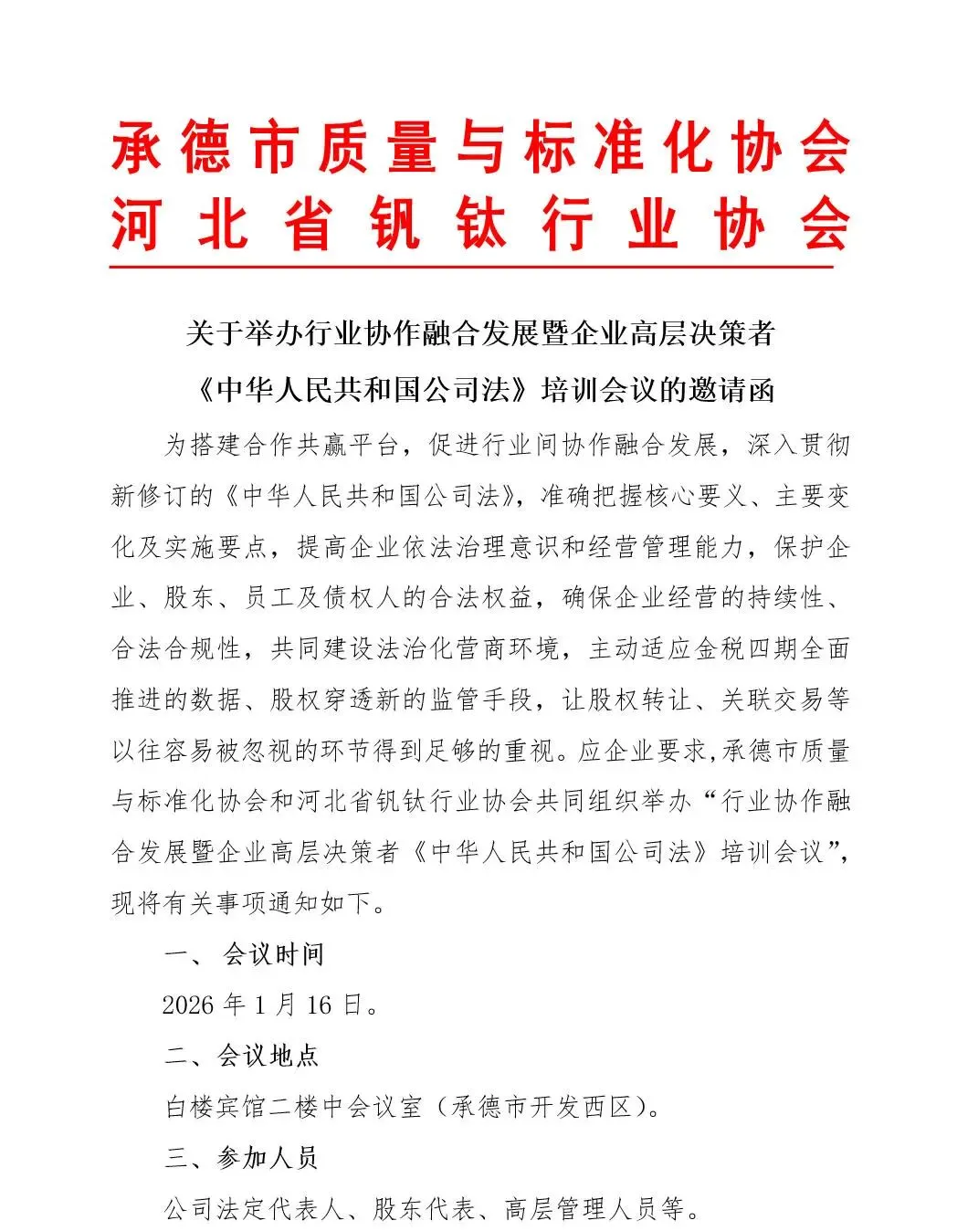 关于举办行业协作融合发展暨企业高层决策者《中华人民共和国公司法》培训会议的邀请函