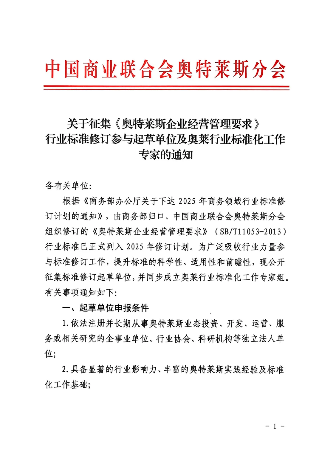关于征集《奥特莱斯企业经营管理要求》行业标准修订参与起草单位及奥莱标准化工作专家的通知