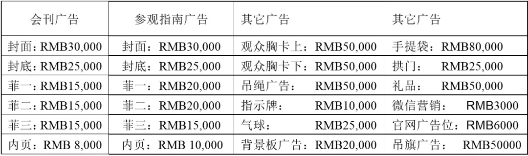 2026上海国际过滤与分离工业展览会2026 Shanghai International Filtration and Separation Industry Exhibition2026年8月6~8日上海新国际博览中心参展咨询:王先生 13816113405特邀单位:中产协过滤与分离分会中国化工学会过滤与分离专委会中国膜工业协会主办单位:中国过滤与分离工业协会执行单位:兰森展览(上海)有限公司 为进一步推动过滤与分离工业行业上下游交流互动,实现相互促进、共同发展,2026上海国际过滤与分离工业展览会将于8月6~8日在上海新国际博览中心举行,期待与您相聚上海。 2026上海国际过滤与分离工业展览会按照“专业化、国际化、品牌化”原则举办的行业国际品牌盛会。既有政府支持,又有行业权威的参与,以其“主题明确、特色突出、注重实效、不断创新”的一贯风格,在行业中的知名度与影响力与日俱升。业内人士已将其视为“了解行业信息、把握市场动态、展示企业品牌、拓展贸易渠道、寻求合作机会”的平台。展会的良好效果赢得了众多展商和观众的好评与青睐。为全球过滤分离企业提供更多的合作机会,有力推动中国过滤与分离相关产品全面进入全球采购体系,与世界各国过滤与分离相关企业协调合作、互利共赢、共同发展进步。 2026届展会将邀请更多海内外专业观众到场,涵盖环境保护、水处理、HVAC、汽车、医疗、石油化工、电子电力、食品医药、建筑等相关应用行业,为参展商带来全球商机。展览日期:2026年8月6-8日展出面积:30000平方米拟邀观众:40000人展览地点:上海新国际博览中心◆按过滤介质活性碳、陶瓷、膜、纸介质、无纺布( 熔喷无纺布, 纺粘型无纺布, 水刺无纺布)、多孔过滤器介质、纳米介质、钢丝/绕织、网、工业用纺织品、合成纤维媒体◆按过滤用途空气过滤器介质、气体过滤器介质、液体过滤器介质、滤油器介质、玻璃纤维介质、液体过滤滤材、燃油过滤器介质◆过滤材料生产设备活性炭生产线、膜制作、造纸机、纺织工业专用机器◆原材料纤维(人造纤维, 纳米纤维)、粘合剂、添加剂◆过滤器高效粒子空气过滤器、尘/雾过滤器、气体过滤器、热气过滤器、滤油器、水过滤器、实验室过滤器、医用过滤器、汽车过滤器、过滤器附件、空气过滤器、细菌过滤器◆过滤器生产线机舱空气过滤器生产线、过滤器封接机、滤管机、面板式过滤器生产线、打褶机、裁切系统、组装设备、剪切机、缝纫设备、穿孔机、涂胶设备◆测试与分析空气过滤测试、无菌无尘空气过滤器测试、高效空气过滤器测试、燃油滤清器测试、石油和燃油过滤器测试、水过滤器测试、过滤媒介测试 本届展会非常注重对展商企业品牌的塑造和推广,通过邀请中央媒体、主流财经媒体、大型门户网站、行业媒体以及海外媒体对展商进行全方位、多角度、立体化报道,最大化地向全球买家推广最新产品和技术,为展商创造无限商机!本届展会将邀请现场报道的媒体有CCTV、新华社、中国经营报、中国证券报、证券时报、凤凰网、搜狐、网易、新浪、腾讯等上百家行业媒体。标准展位(3m*3m)* 标准展位(单开):RMB18000/9m²/展期* 双开口展位:RMB20000/9m²/展期* 外资企业:USD6000/9m²/展期光地(36m2起租)* 标准展位(单开):RMB2000/m²/展期* 双开口展位:RMB2000/m²/展期* 外资企业:USD600/m²/展期标准展位:(包括三面围板、楣板、一桌二椅、220V电源插座、地毯、清洁费等)。空地:不包括任何配套设施,需要者另行租用。会刊广告封面:RMB30,000 封底:RMB25,000菲一:RMB15,000 菲二:RMB15,000菲三:RMB15,00 内页:RMB 8,000其它广告封面:RMB30,00 封底:RMB25,000菲一:RMB20,000 菲二:RMB20,000菲三:RMB15,000 内页:RMB 10,000其它广告观众胸卡上:RMB50,000 观众胸卡下:RMB50,000吊绳广告:RMB50,000 指示牌:RMB10,000气球:RMB25,000 背景板广告:RMB20,000手提袋:RMB80,000 拱门:RMB25,000礼品:RMB50,000 微信营销:RMB3000官网广告位:RMB6000 吊旗广告:RMB50000★企业如需安排此类活动,请及时向大会组委会联络,以便安排较好时间段。★每场收费35,000元RMB,时间为25分钟(含场地各类配套设施、宣传费用等)。为方便知名企业借助本次展会的国际影响力,展示企业实力、提升品牌形象,组委会特设展会赞助方案。高效赞助方案,将给您在展前、展中、及展后带来更多商机、增强参展效果。特设四个级别:钻石级、白金级、金牌、银牌(详细方案备索)。赞助商将得到如下收益:● 通过有效市场曝光更多接触目标客户● 比竞争对手获取更高的曝光率● 以行业领先者的姿态参与行业盛会● 提升品牌形象及认识度● 通过新的平台建立销售网络,增加贸易机会● 得到更多的采购商及专业卖家资料参展及会议咨询:联系:王先生 13816113405电话:021-6764 1180传真:021-5186 2460E-mail:2573929581@qq.comQ Q:2573929581官网:www.iwte-water.cn