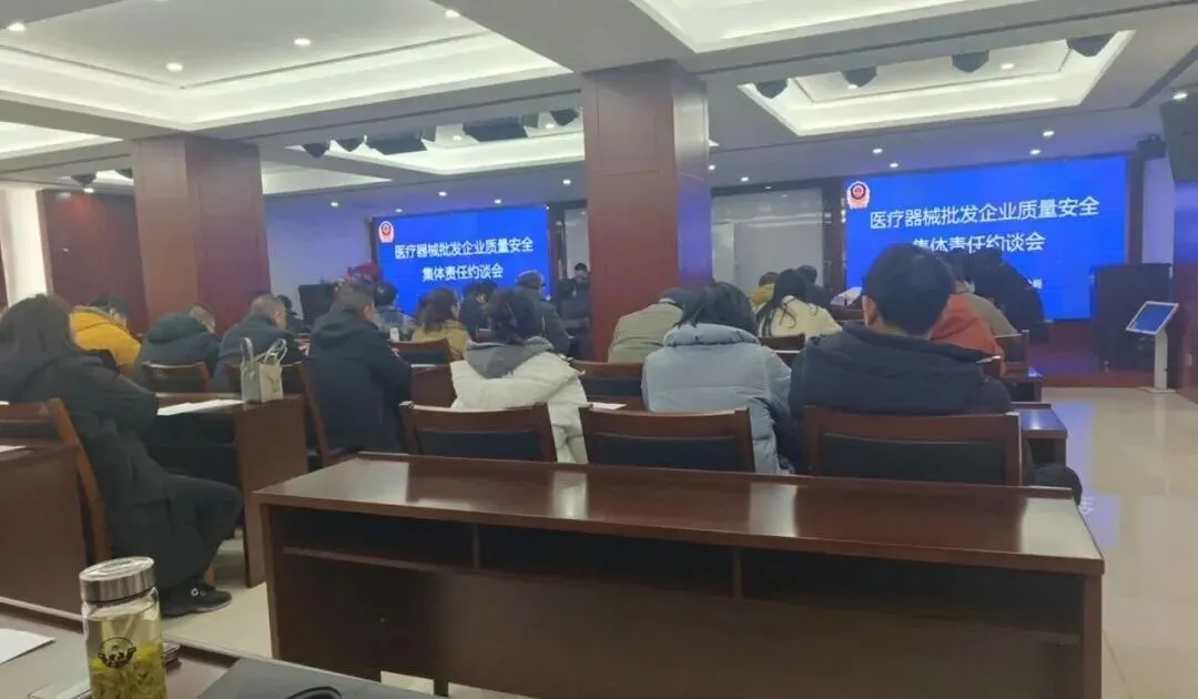 2025年年底,黄桥电商产业园接泰兴市市场监管局通知,2026年1月4日需组织园区内医疗器械企业参与全市范围的医疗器械批发企业质量安全集体责任约谈会。接到通知后的第一时间内,电商园运营团队积极配合,组织园区内所有行业相关的企业于1月4日下午2点参与了本次会议。