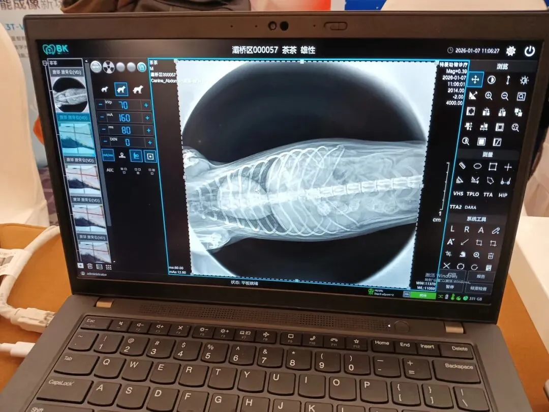 在现场为宠物犬完成腹部影像拍摄过程中,王朝系列mini手持DR凭借轻量化机身设计以及快速出片效率,吸引了多位兽医师驻足体验与交流。