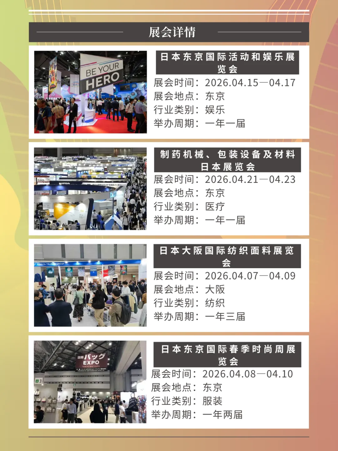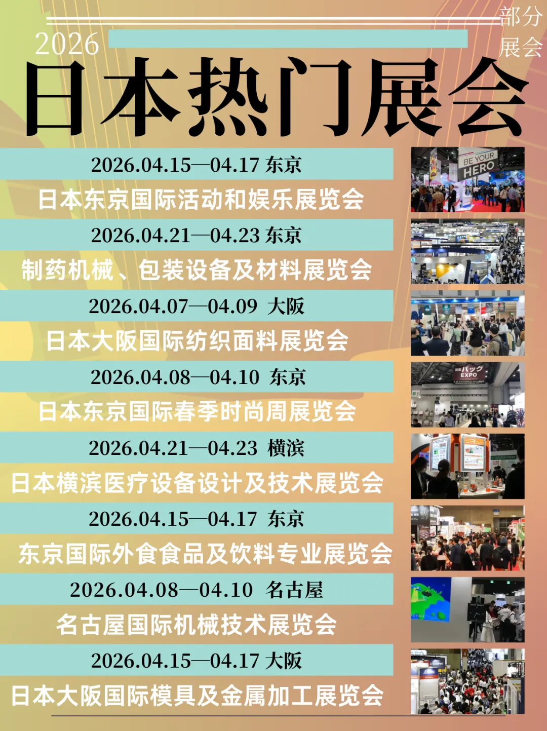 2026年4月的日本展会季将开启,从东京到大阪,从横滨到名古屋,多个行业领域展会信息密集。想了解企业出海、拓展市场或商务考察行业趋势,这篇展会攻略将帮你快速锁定目标。