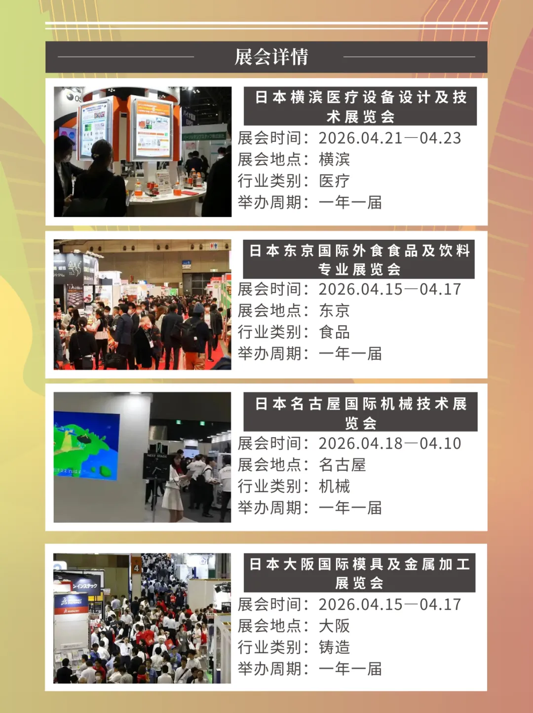 2⃣地域分布广:展会布局东京、大阪、横滨、名古屋四大经济核心城市,可结合区域产业特点商务考察。