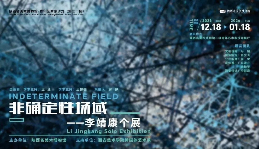 “非确定性场域:李靖康个展”是陕西省美术博物馆“青年艺术家沙龙”系列的第二十回展览。展览集中呈现了青年艺术家李靖康创作的6组装置、影像及数字艺术作品。艺术家通过机械臂、风力数据影像等多元媒介,探讨技术时代下身体感知与自然、城市的关系,构建了一个邀请观众介入、反思的互动艺术场域。