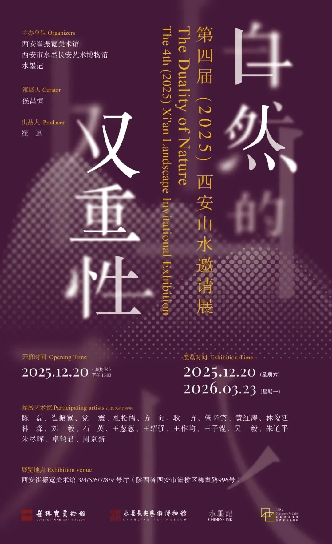 展览是由西安崔振宽美术馆精心打造的品牌学术展览,项目以双年展的形式持续呈现,旨在打造西安以“山水”为主题的国际性学术展览。“自然的双重性”致力于探究“山水精神”的内涵与外延、传统与现代,思考山水在当代语境中重塑、再生的论题,继承拓展、重构转换是关键词。继承拓展,是植根于中国山水内在的语言形式和思想谱系中实践的新变;重构转换,则是注重发现当代艺术创作中借鉴山水经验的新表现,进而探究山水与时代性、全球化的命题。