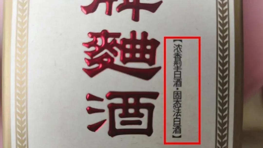 第一步,找到“固态法”三个字,这种一般就是粮食发酵蒸馏出来的,口感更醇,不容易一口就冲鼻子.
