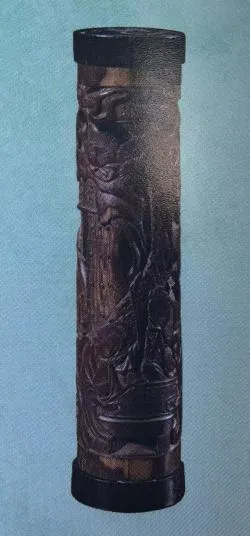 竹刻发展到明代中叶,逐渐形成了独立的艺术门类。当时刻竹之风最盛、影响最大的地区是上海的嘉定。此次“上海6000年”主题图文展选入朱稚征的竹雕松下高士笔筒,目前正在凉城社区文化中心进行展出。本次展览以“文明初曙、因水而兴、人文荟萃、中西交汇”为脉络,精选24件/组体现上海城市发展的代表性文物图文,展现了这片土地跨越六千年的文明演进轨迹。笔简简身综合浮雕、镂雕工艺,镌刻一位高士在松石间展卷濡毫,在他蓦然回首时,两只蝙蝠翩翩而至。岩石间用阴刻大篆镌刻款识“万历乙卯年朱稚征”。朱稚征的作品多用“三松”别号,且字体大都为行书,这件笔筒的落款方式与之不同,为目前所仅见。