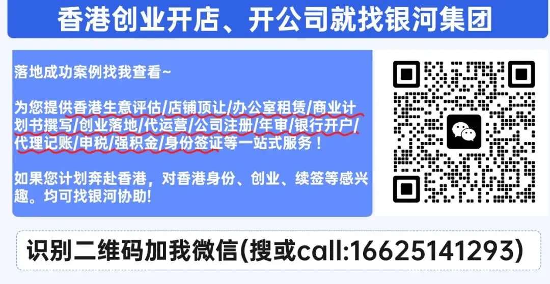 香港身份、创业、公司注册、真实独立地址、年审报税、缴纳强积金、变更信息、银行开户等就找银河,只专注香港。国内top品牌,和港府深度合作!大公司有保障。联系我(微信and电话16625141293)安排专业规划老师一对一服务