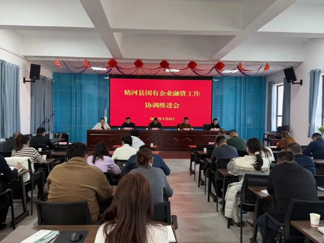 为统筹推进2026年精河县国有企业融资工作,强化风险防控体系建设,2026年1月8日,精河县国有企业融资协调推进会在安阜投资公司五楼会议室顺利召开。县国资中心、安阜投资公司、阜诚文旅公司、汇誉城乡公司、安阜鑫丰公司及各子公司主要领导和财务负责人参会,共商融资发展大计,共筑风险防控屏障。