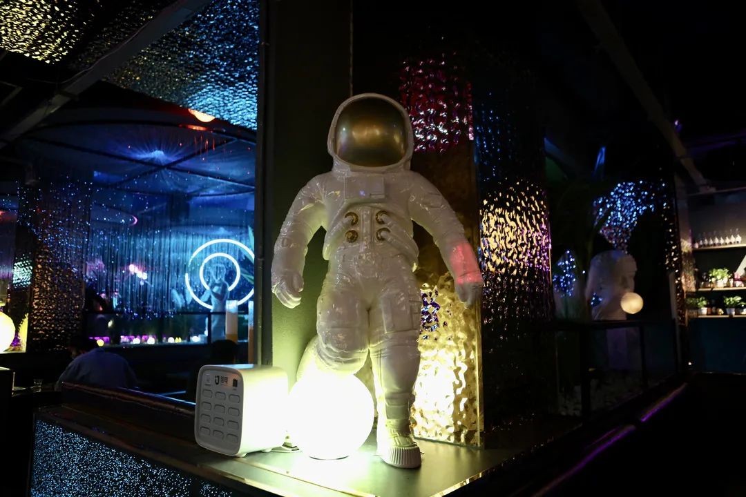 店里还有一个坐在星球上的宇航员,