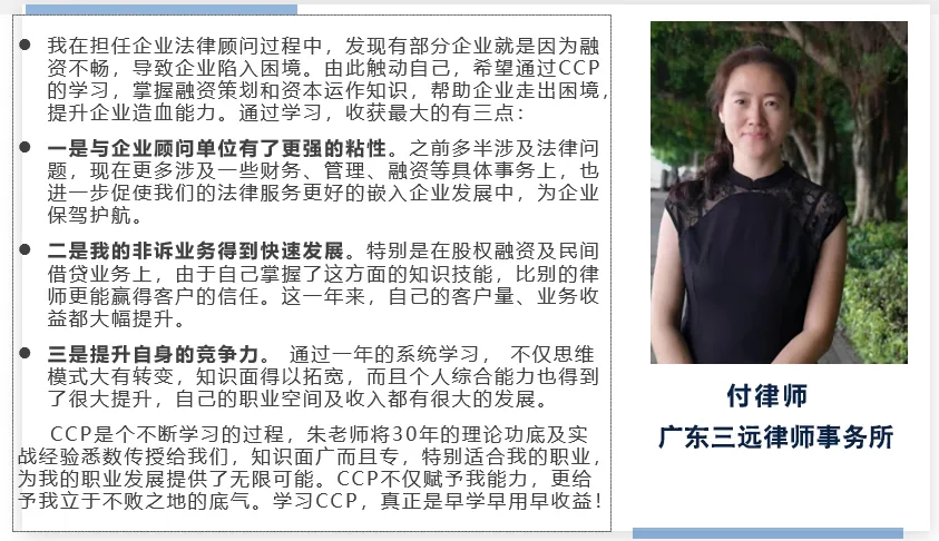 我们大胆预测:未来中国资本策划师(CCP)必将成为继律师、注册会计师、CFA、ACCA后,国内又一个具有广阔发展前景的金领策划职业。